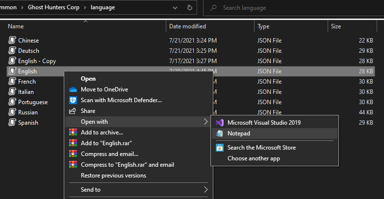 You will see several language files in this directory. Since I’m American, the file that I will be editing is the “English.json” file.