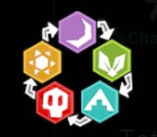 As you might be able to tell from the orientation of the arrows in the above image, it’s a basic rock-paper-scissors system. Red defeats Yellow, while Red itself gets stomped by Aqua.