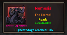 When you enter the Nemesis fight, you keep fighting stronger and stronger versions of him until you either die, or run out of time. You gain more time with each kill, so it’s unlikely you’ll be timed out unless you have a massively focused defensive build. Once you’ve ended the Nemesis fight, you’ll gain a few types of rewards.