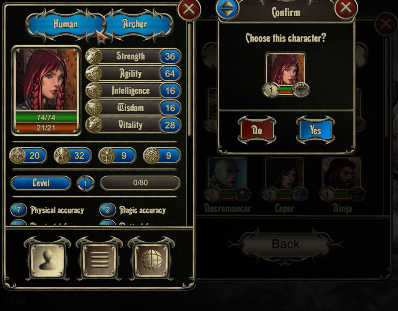Tip: You’ll want to click over from the base stats window to see their active and passive skills. Do this for the main character as well, so you can understand what options you have for that character. This will help you to make better choices about your starting team–can that Paladin be your front-line tank if her weapon proficiency is in “Talismans?”