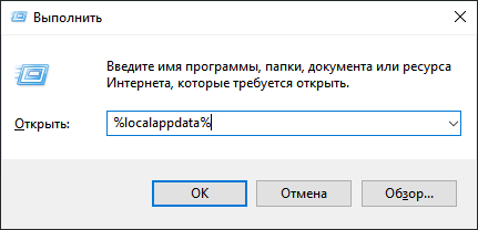3. In the window that opens, paste %localappdata% (with a % sign) and press “OK”