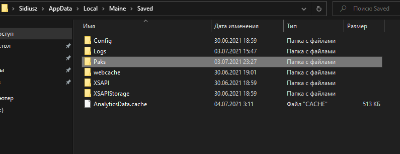 5. Create a “Paks” folder in the “Saved” folder if one does not exist