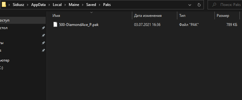 6. Move the mod file “500-modname_P.pak” to the “Paks” folder