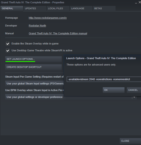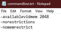 If you do not have GTA 4 on steam, you must right click the shortcut you use to open the game, select properties and under shortcut add ” -availablevidmem 2048 -norestrictions -nomemrestrict” into the target box, do not delete any text here. (This effectively does the same as above)