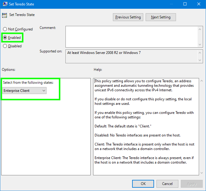 This issue usually persists because your Teredo cannot qualify (due to many reasons), to easily fix that we can switch it from Client to Enterprise Client, like this: