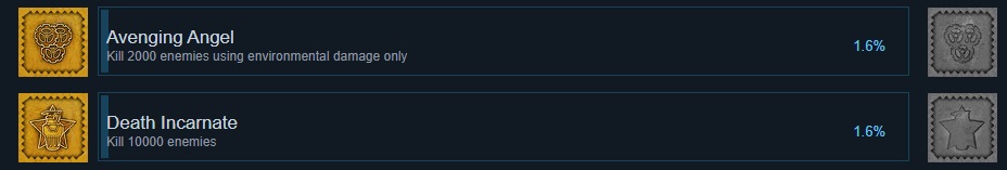 and - Avenging Angel – Kill 2 000 enemies using environmental damage only.