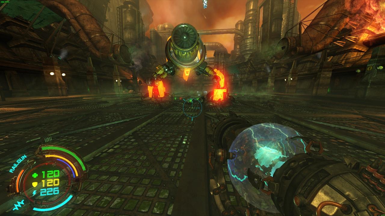 2.) Fight the boss like you normally would – shoot the flying bots to drop the EMP barrels when needed, let him suck one of the barrels and then destroy one of its highlighted parts.