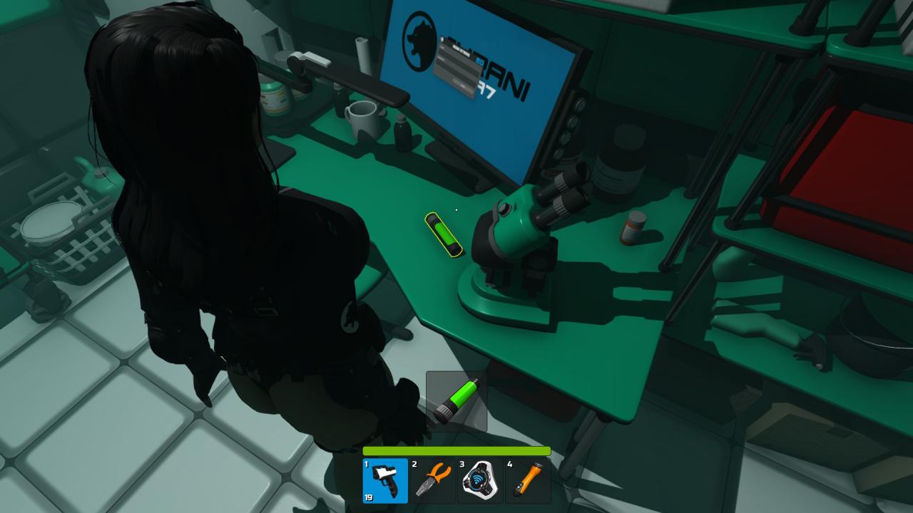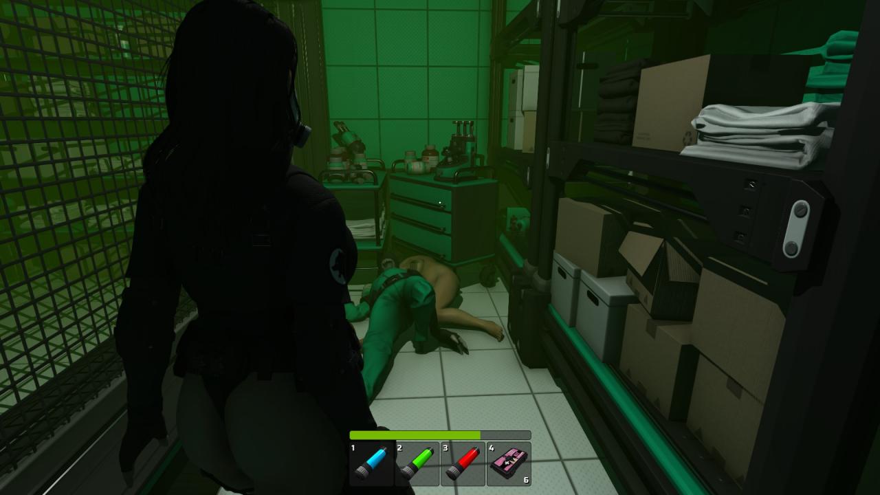 Now here is what you need to do, put everything you can inside your box and take light blue key card, blue liquid on key 1, green liquid on key 2, red liquid on key 3, (you can place it in whatever order you want actually), medkit 6 key 4 (if you have more pick up, since with only 6 you are going to end up using all of them) and equip you rifle/shotgun. now open the menu and place you mouse on the same spot here the light blue key card, because as long you don’t open the menu the mouse won’t move this is useful to us.