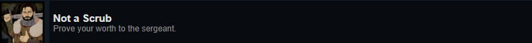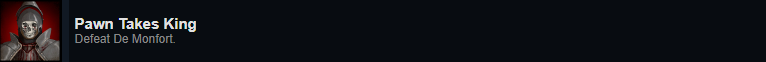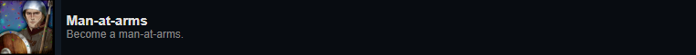 The following achievements are part of a large quest chain that requires multiple things to be done in a single playthrough: In Act 1, you need to impress the sergeant by killing the two enemies from Not a Scrub. In act 2 and 3, you need to help Freya with the smugglers and Maria. In act 3, you also need to help Ruffin by giving him an level 3 (!) antidote (consider getting the trinket that gets you all crafting recipes). In act 4 you need to throw out the drunks for Freya and tell her the truth about your past. Lastly, you need to wait for the torture the prisoner event in act 4. You also need to prevent any options that may lose you reputation with the earl and keep your virtue low. At around ~30 reputation you should be promoted to a Man-at-arms. Hitting the prisoner before torturing him will reduce your virtue. Once you torture him and you have more than ~35 reputation with the earl and less than 30 virtue you will receive a new quest called A Strange Affair. If you didn’t receive the quest, then something went wrong. If you’re low on reputation with the earl still consider playing all finales through till end as that also gives you reputation.