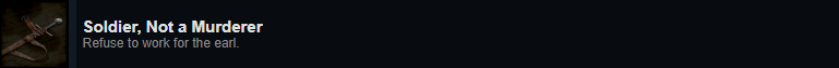 For this quest you need to talk to the earl. If you choose to not accept a A Strange Affair from the earl, you’ll receive Soldier, Not a Murderer.