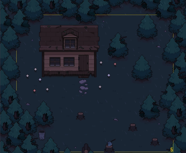Lore’s house is a small, two-story wooden house in a forest. It seems to be the only structure in the area and has nothing around it besides The Forest. Additionally, a few trees around Lore’s house seem to be cut down.