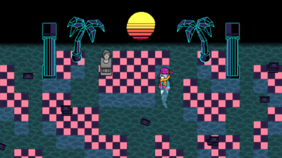The Vapor Cave is a secret area located in Animus. This secret room is only accessible if the player’s clock reaches 20:08. When this happens, a bridge of lily pads will appear, allowing the player to walk to the other side of the lake. Once there, the player can step into the mushroom ring to enter. Exiting the Vapor Cave can be accomplished by stepping into the sunset on the back wall.