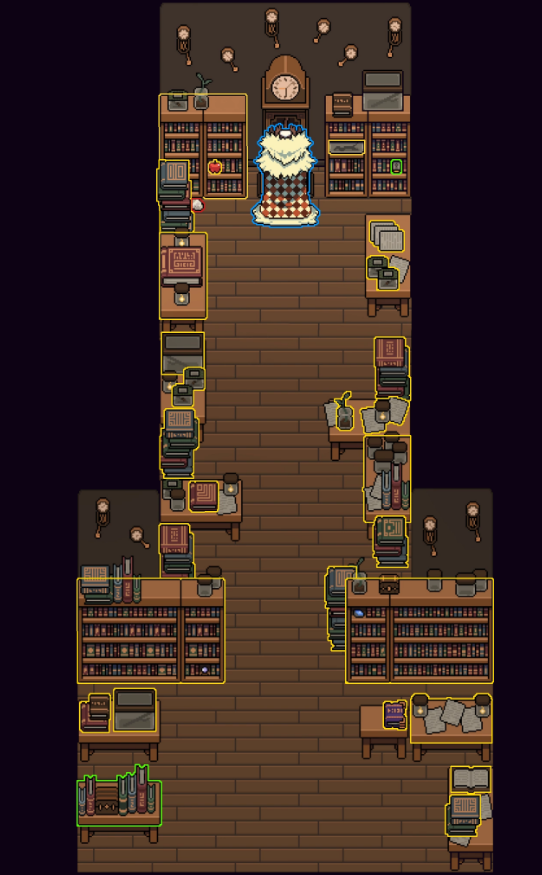 Home to Binder, this mysterious library is in an unknown location to the player. Inside, it is home to many clocks, and as the name suggests, books. This location is highly interactive, with even the stacks of books being interactable.