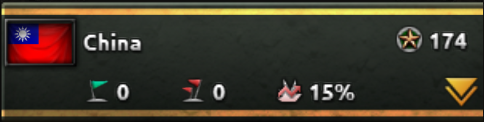 This panel is also used to select victors as beneficiaries of your demands. By default, your country is selected, so any demands made are given to you; but upon selecting another country, subsequent demands selected will be given to the selected country until it is deselected. The current beneficiary is indicated with horizontal yellow bars, as shown below.