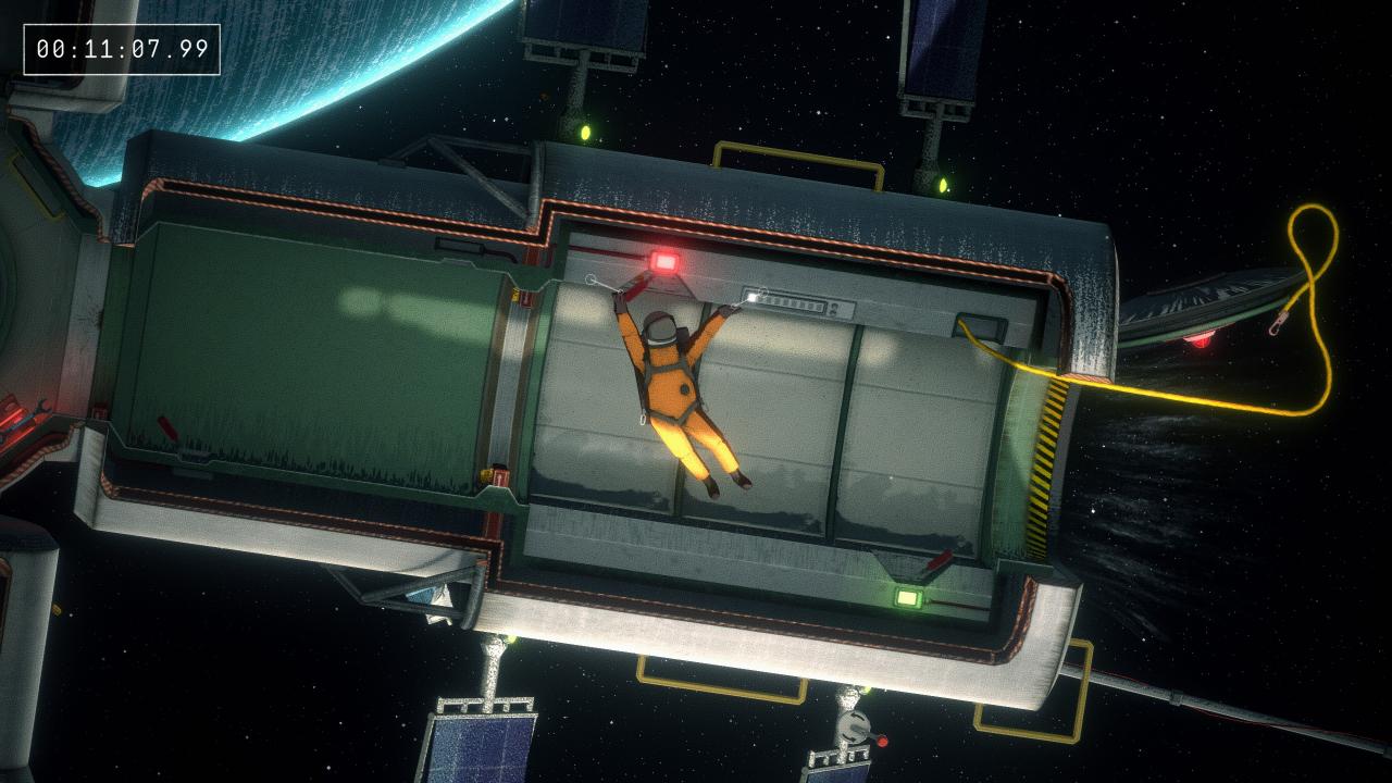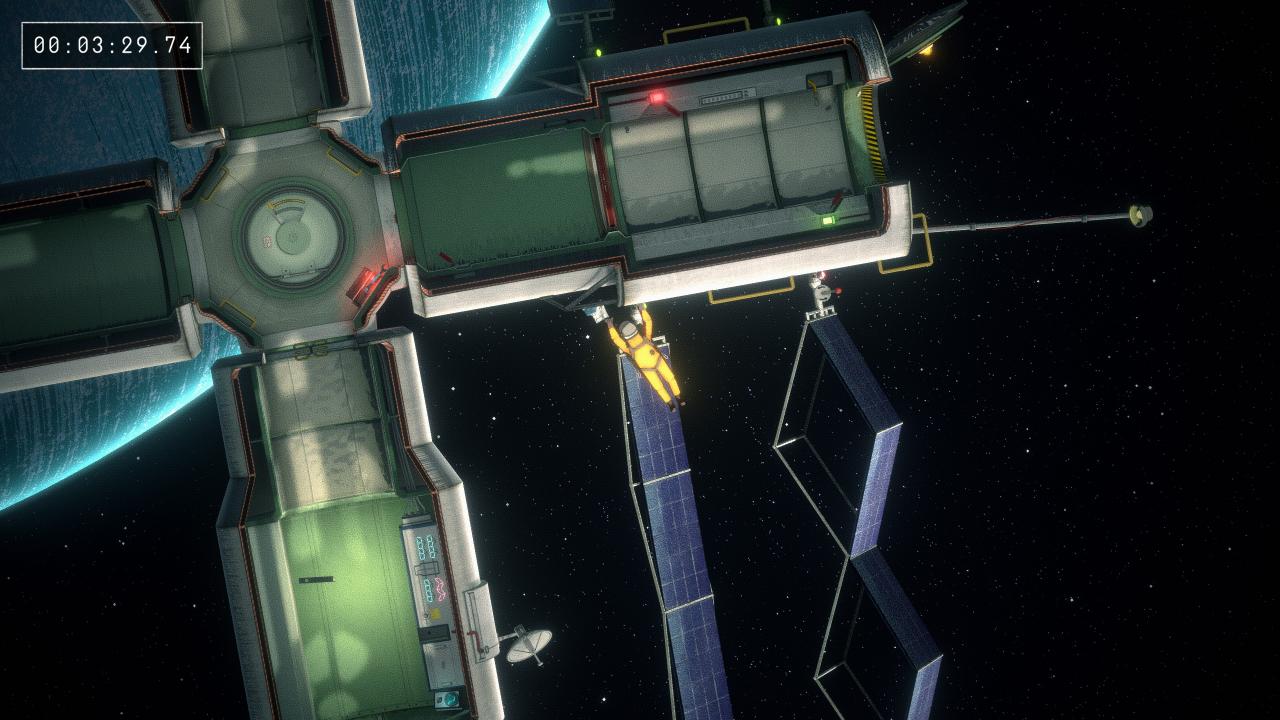 Not too bad to do on Newtonian since you can connect enough ropes found in the level to do this reach this collectable while still attached to the space station.