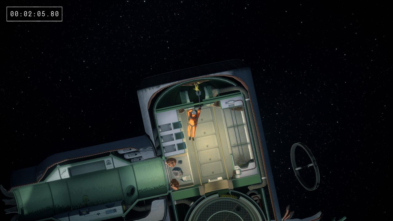 This one isn’t too bad, the tennis rackets are found in the cupboard with the crowbar stuck in the opening. It takes a bit of wiggling to get them into the opening of the airlock, and it can be easier if you use one arm to pull the door open a bit and another to wedge the racket it, but keep trying and you’ll get it eventually.