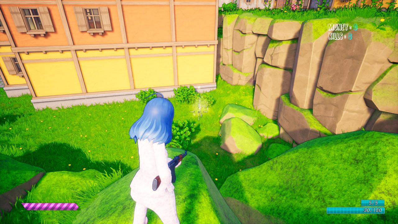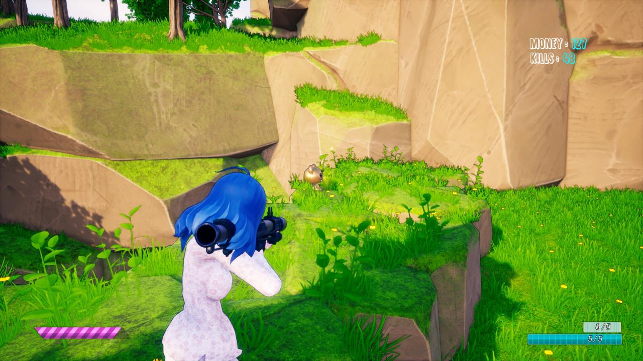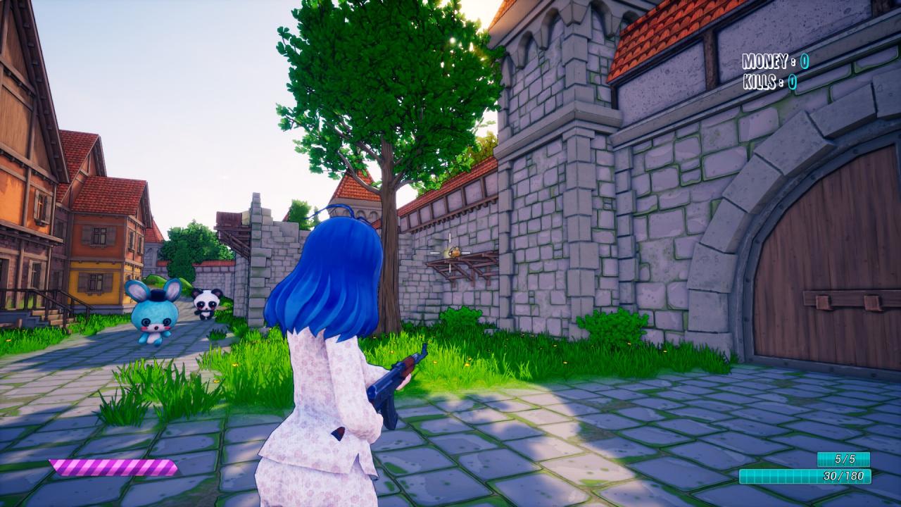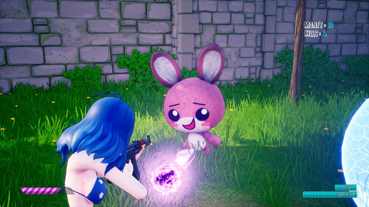 Best AOE weapon. Deals a decent amount of damage. This weapon is great when there’s a mob of bunnies after you, specially since the corpses’ hitboxes don’t interfere much with the explosions. Just spam rockets at groups of enemies and you have an easy 50-kill achievement in no time.