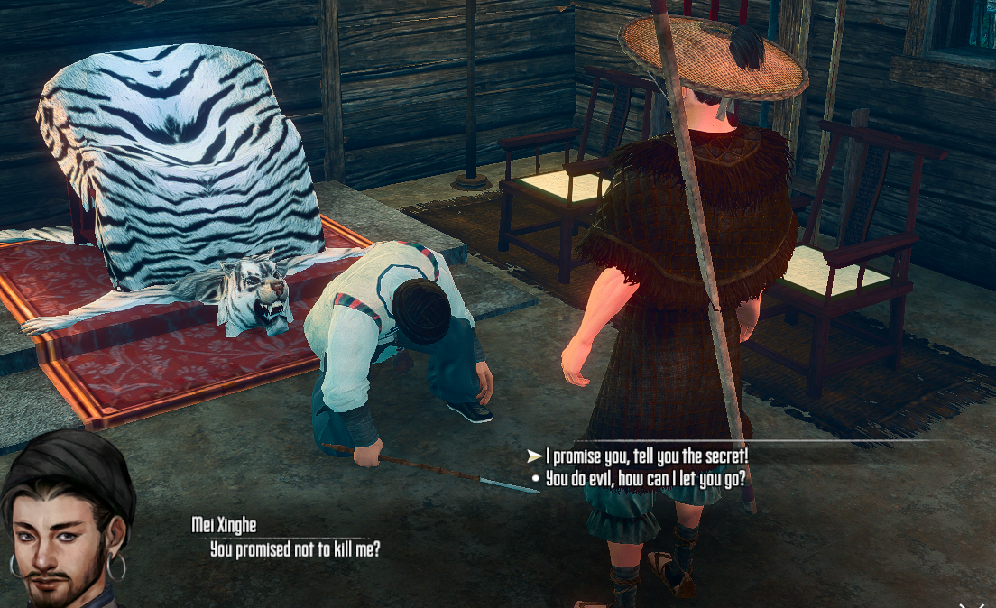 (Quiet). Narrow window you can get this. It must be before you recruit He Yuqing after you’ve had the 3-way duel in the Shu Yuji tavern. Talk to the beggar at the exit on the north end of Dayan Town and pay him some money. He’ll lead you to some bandits. You need to execute them after the battle and search the body.