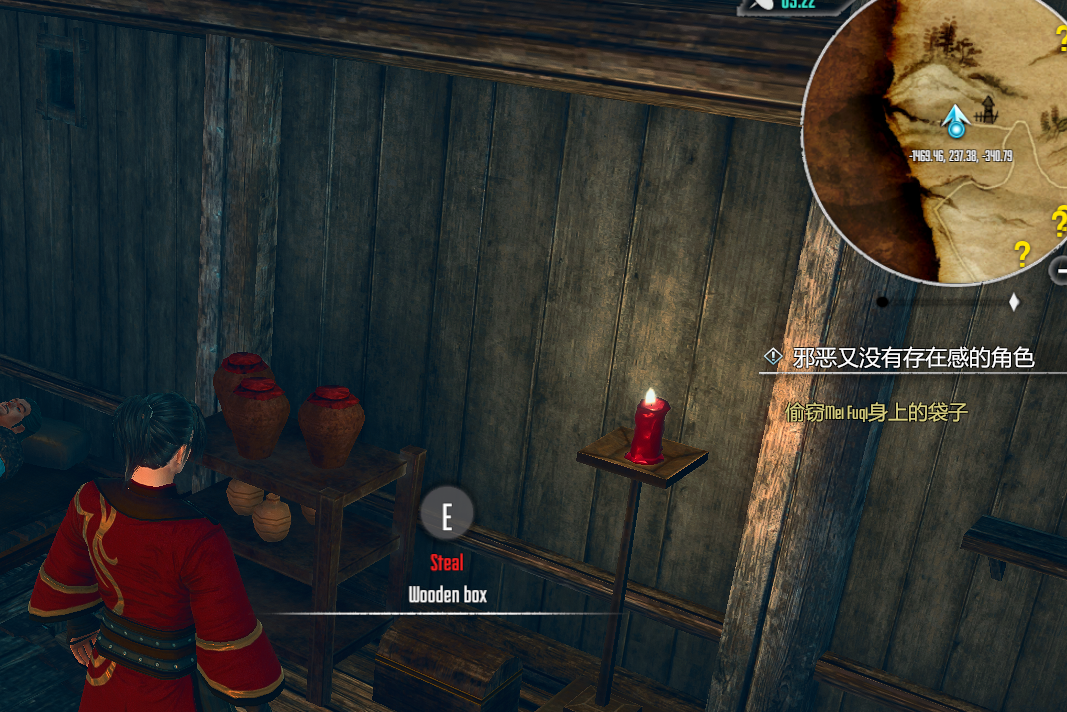 (Hard). Traded by the blacksmith in Gongshi Village. You need to give him three sheets. First is on the roof. Second is under some bags that the nearby worker pays you to move, but you need a certain level of village reputation before you can start it. Third is in the hay by the chickens but can only be retrieved after you fight the thief at night.