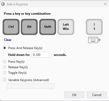Then you can add the action, for the purposes of hogwarts legacy, you should only need the ‘key press’ action.