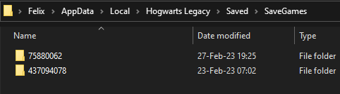 %LOCALAPPDATA%\Hogwarts Legacy\Saved\SaveGames