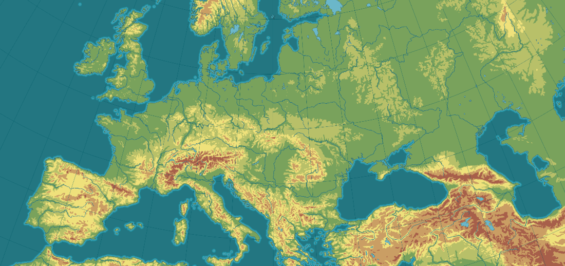 Colored map and palette, with only 7 levels defined, from -1 (deep sea) to 5 (mountains).