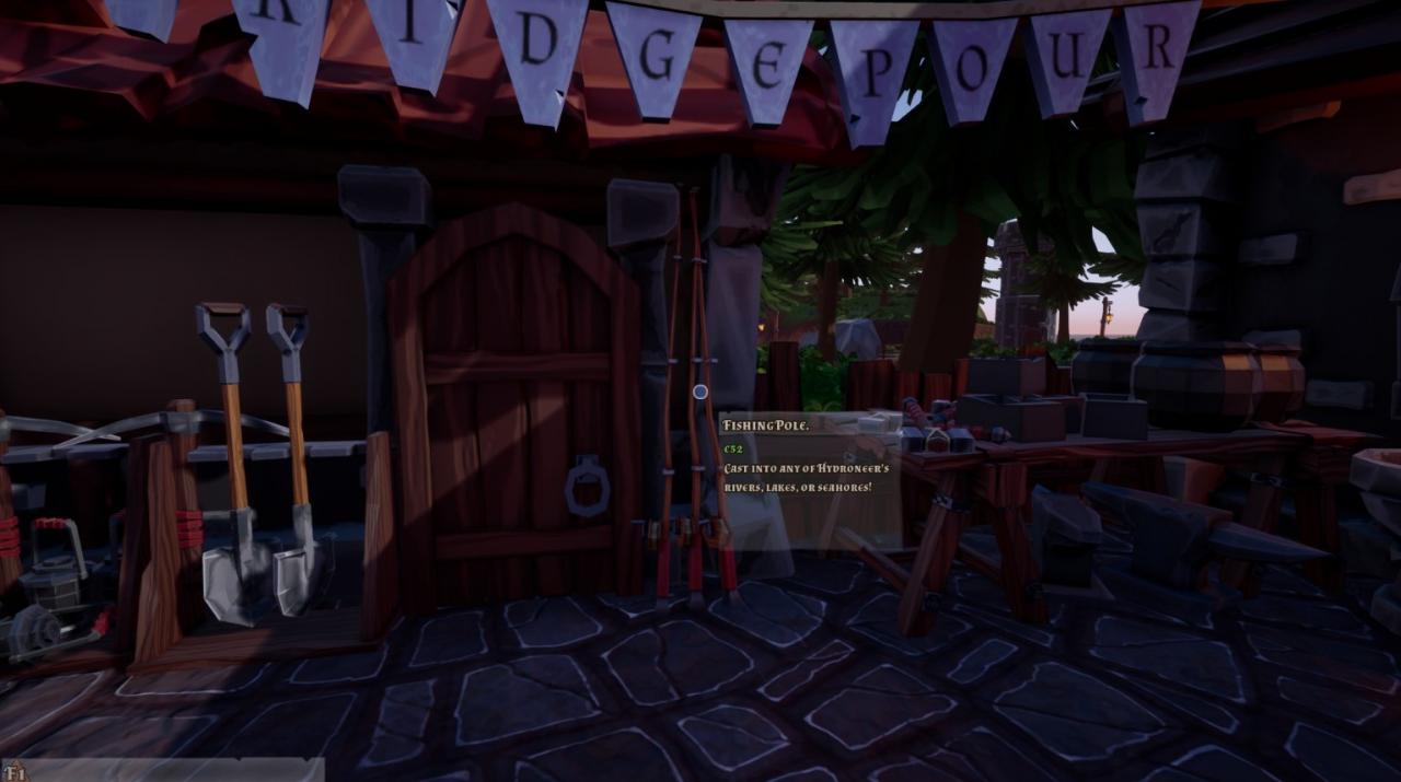 Step 1 is to toil away in the dirt like a peasant until you have 52 coin. This should take less than a day of collecting nuggets, and now you are set for life. Head to the shop and buy the fishing rod.