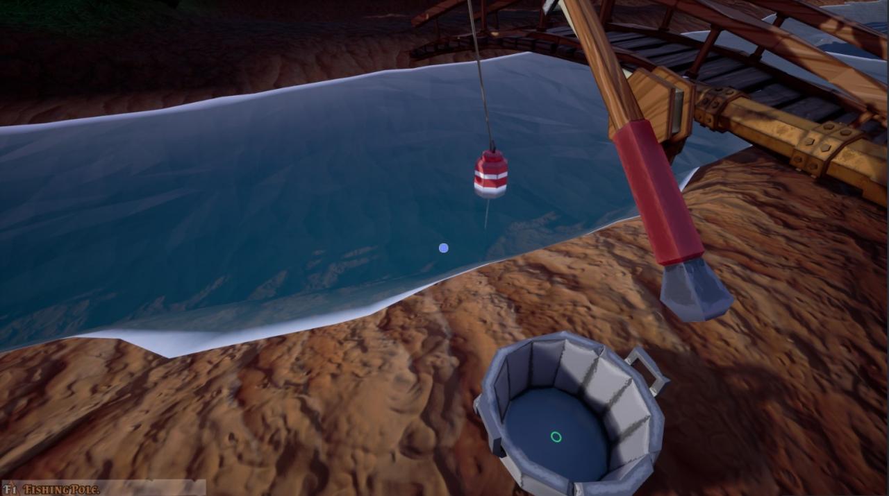 Now a fun fact about the pan is that once a fish is placed into the pan it no longer has collision. This feature lets us relax and left click until we have a nice fish collection.