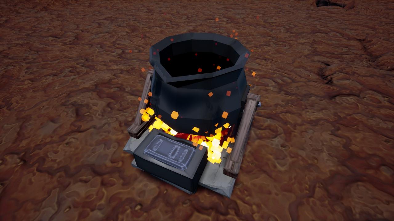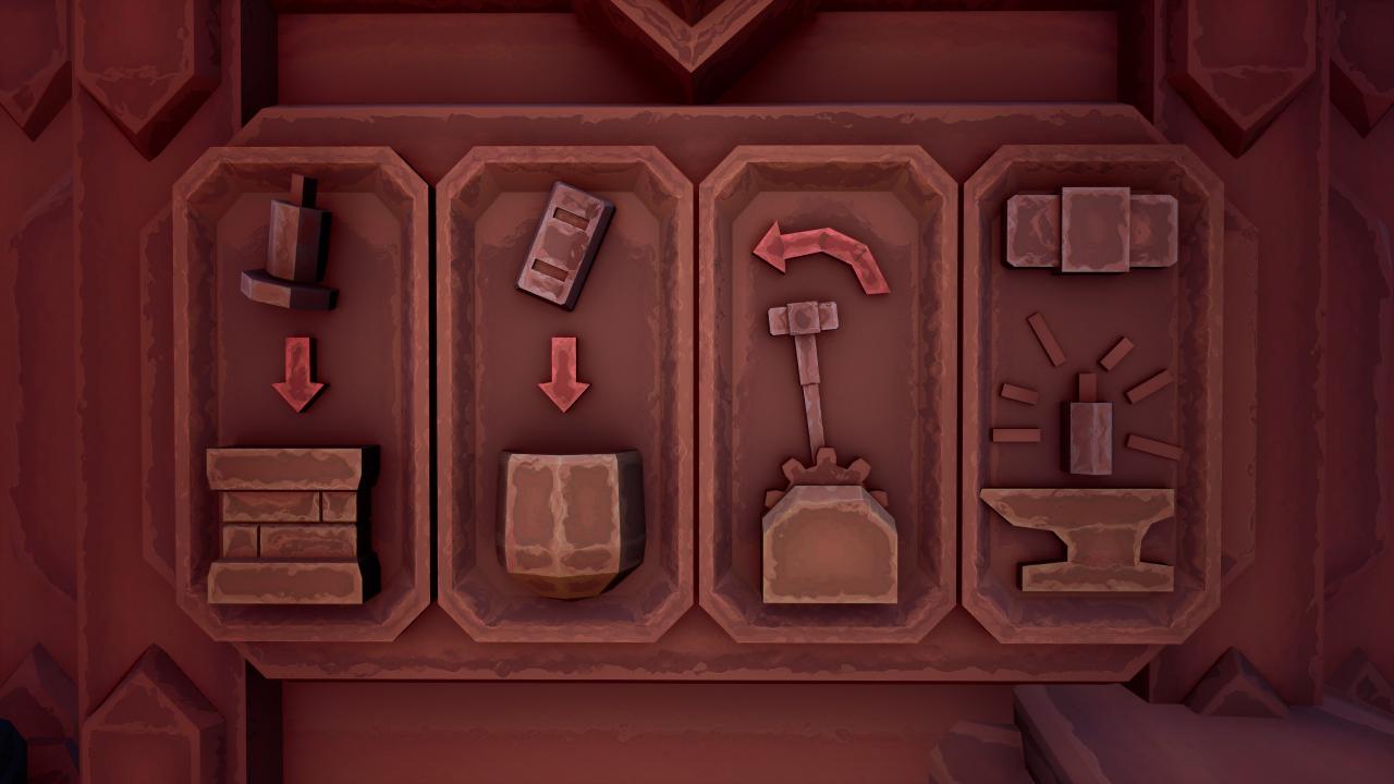In addition to our finished product, you will also get back the excess resources that you put in the forge crucible. This can be found on the front-left side, when facing the anvil.