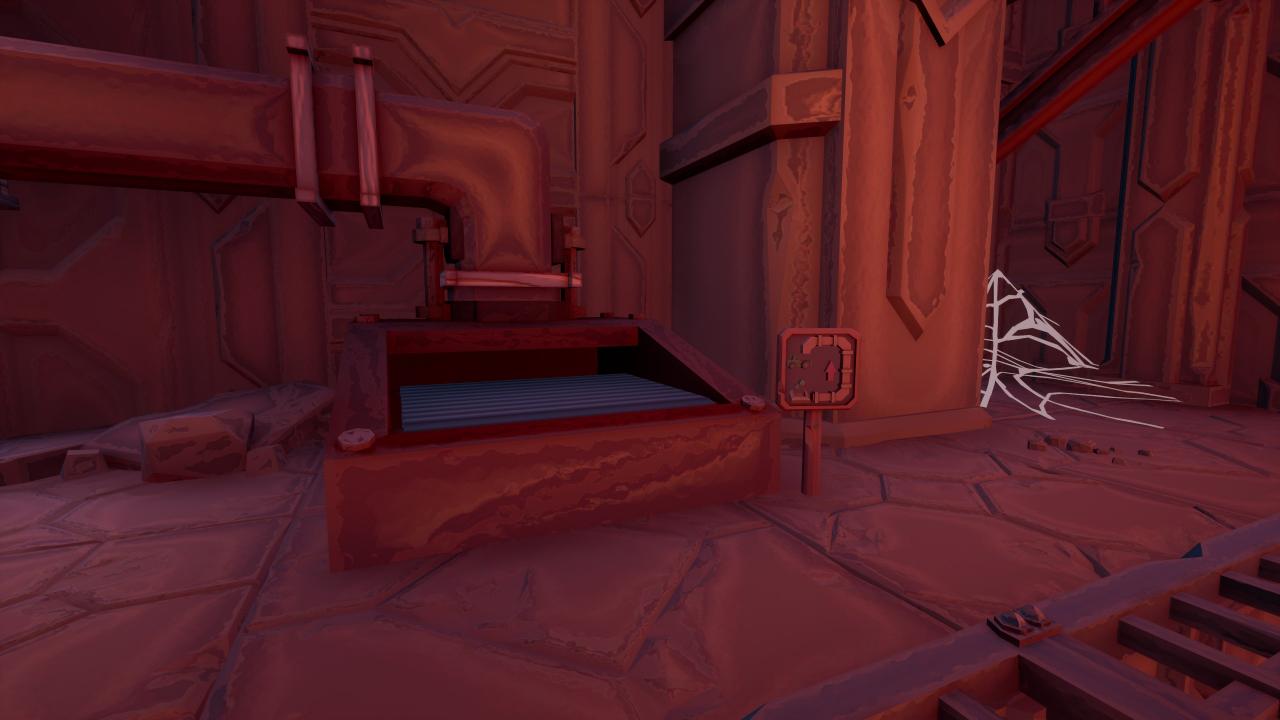 Next, move through the entrance on the left and go down the lift. You can also fall down if you don’t want to wait for it, since currently there is no fall damage in the game.