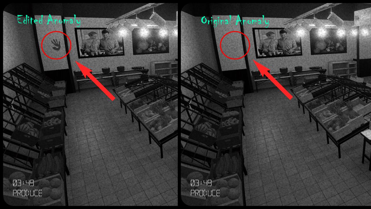 Note: This picture is edited to see the anomaly better as it is very light and blends in with the wall. The hand print will never be so dark in game as previewed on the left image. I made the hand print exposure darker so you can see it better.