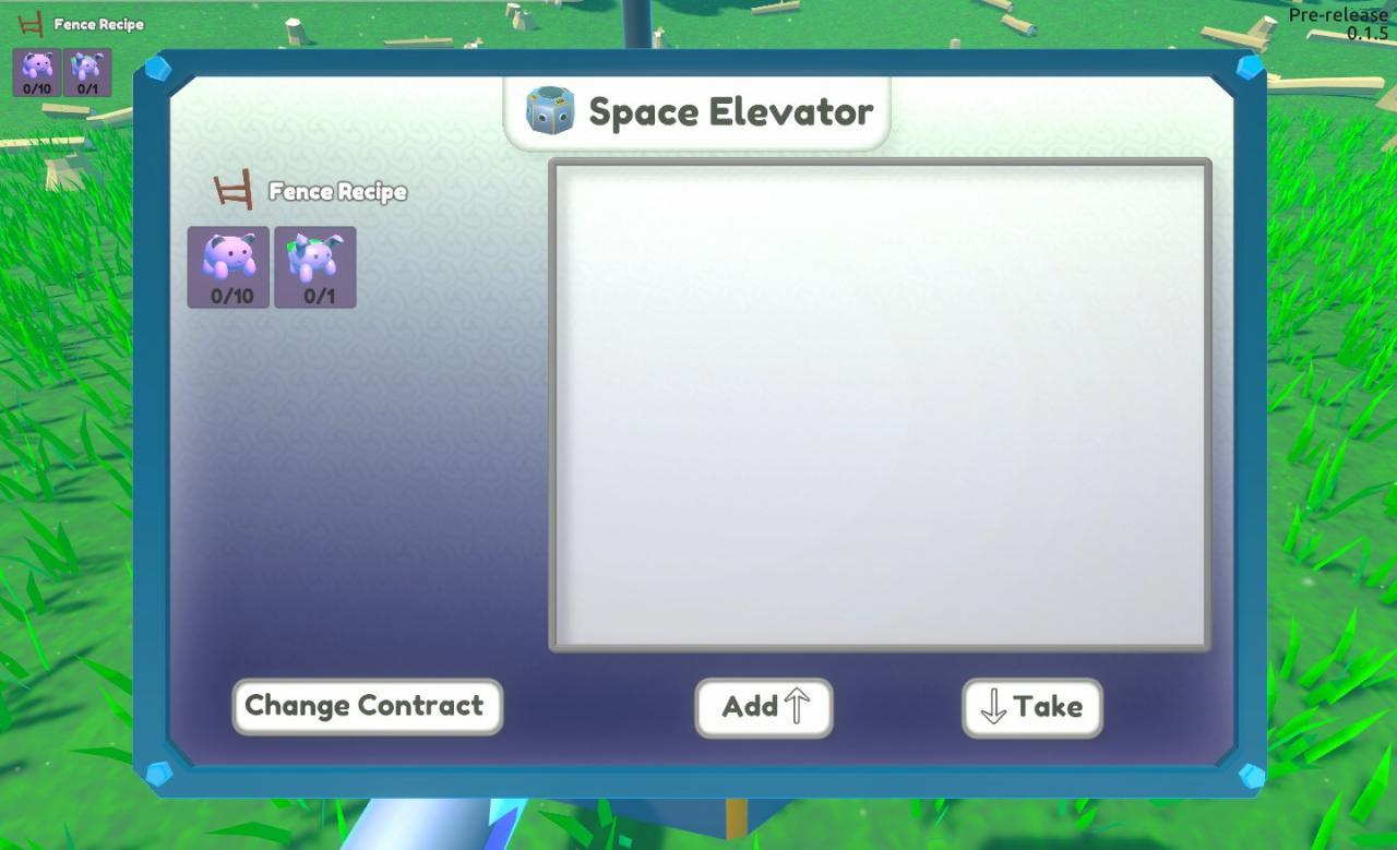 For this next part, we’ll need another Pet Assembler, and for that we need to figure out how to pull pets out the space elevator! Go ahead and interact with the elevator and you’ll be greeted with this menu: