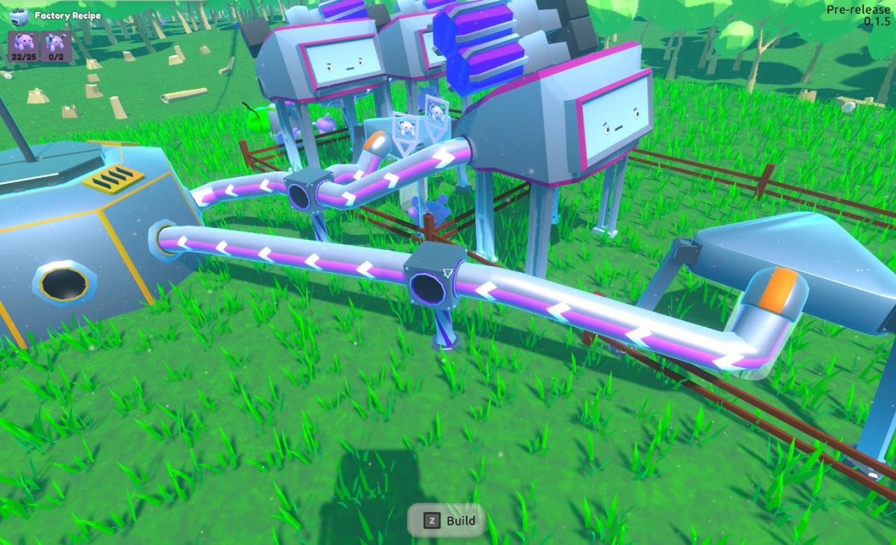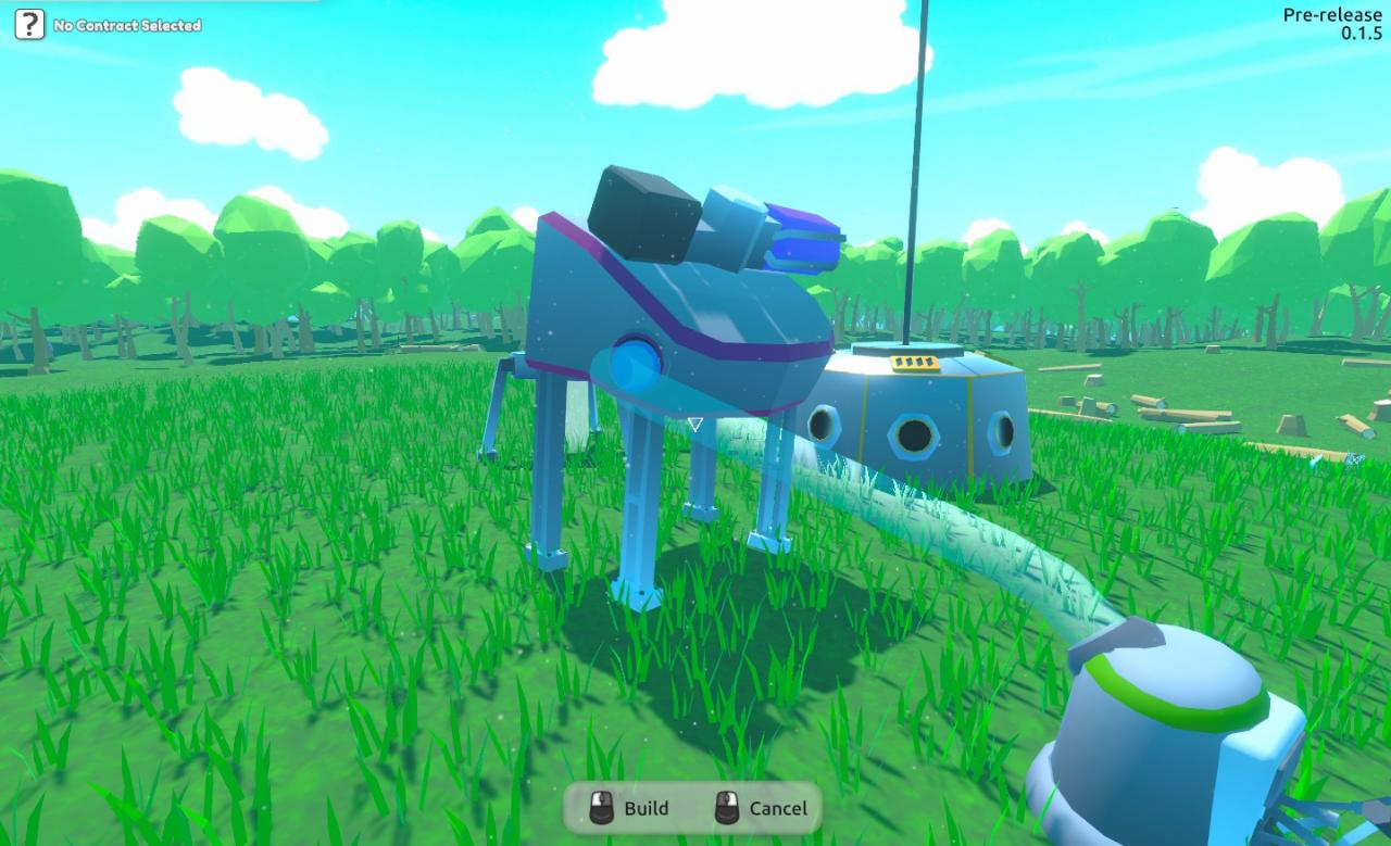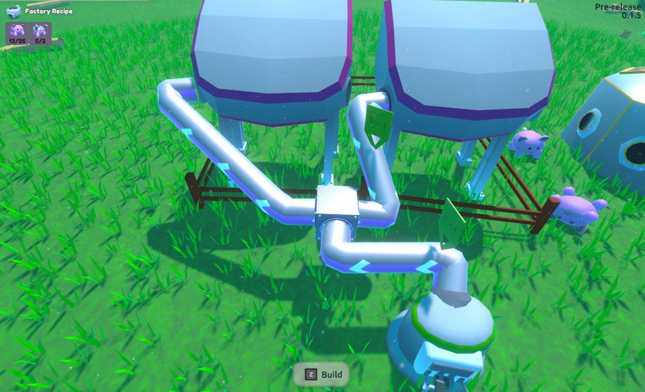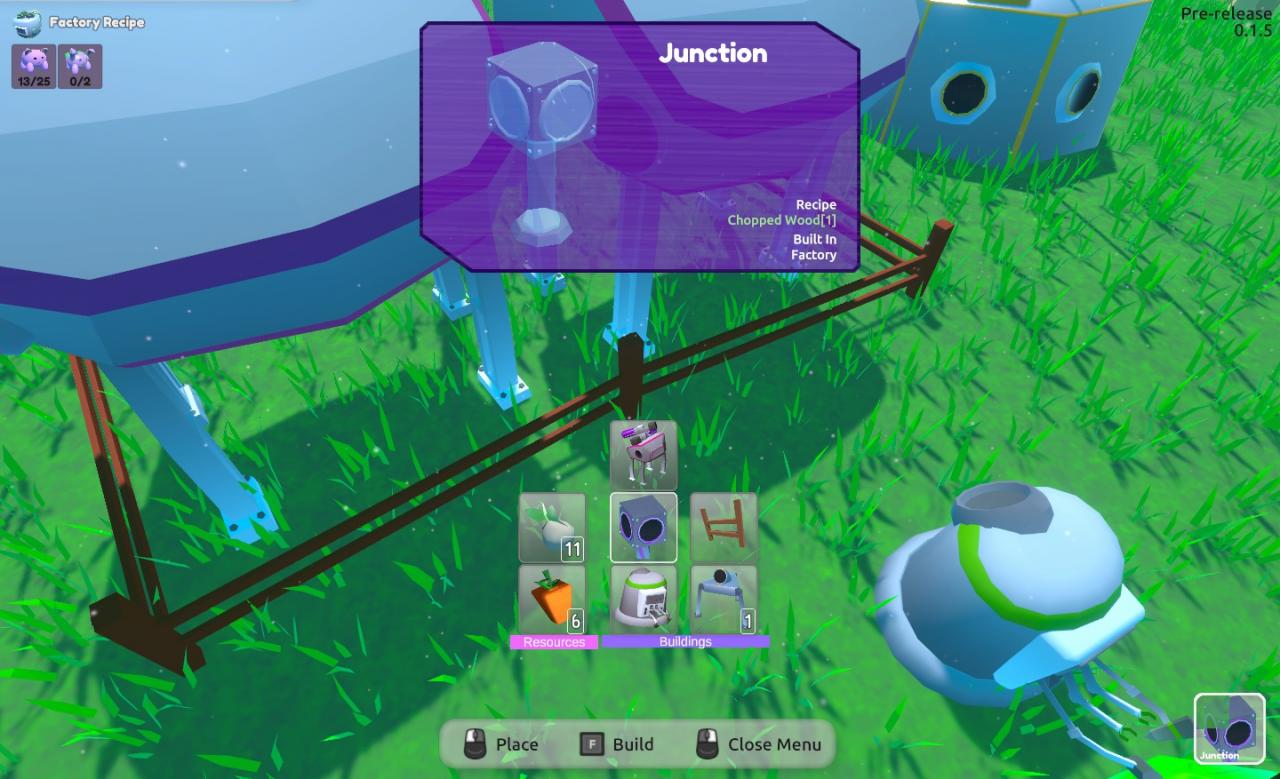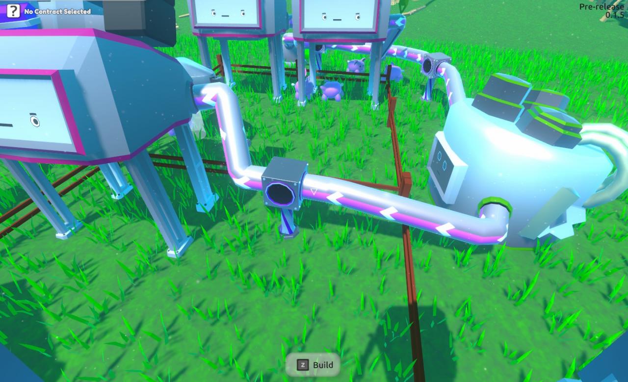 Using the left mouse button will allow you to create a pipe network from that output! This is extremely useful and a core part of the game mechanics. From here you can pull a pipe and connect to a machine. The pipe has a limit, however, but you can extend it by building more junctions. Luckily, you can do that without changing menus! The build system is smart enough to allow you to build more of the items you’re trying to place.