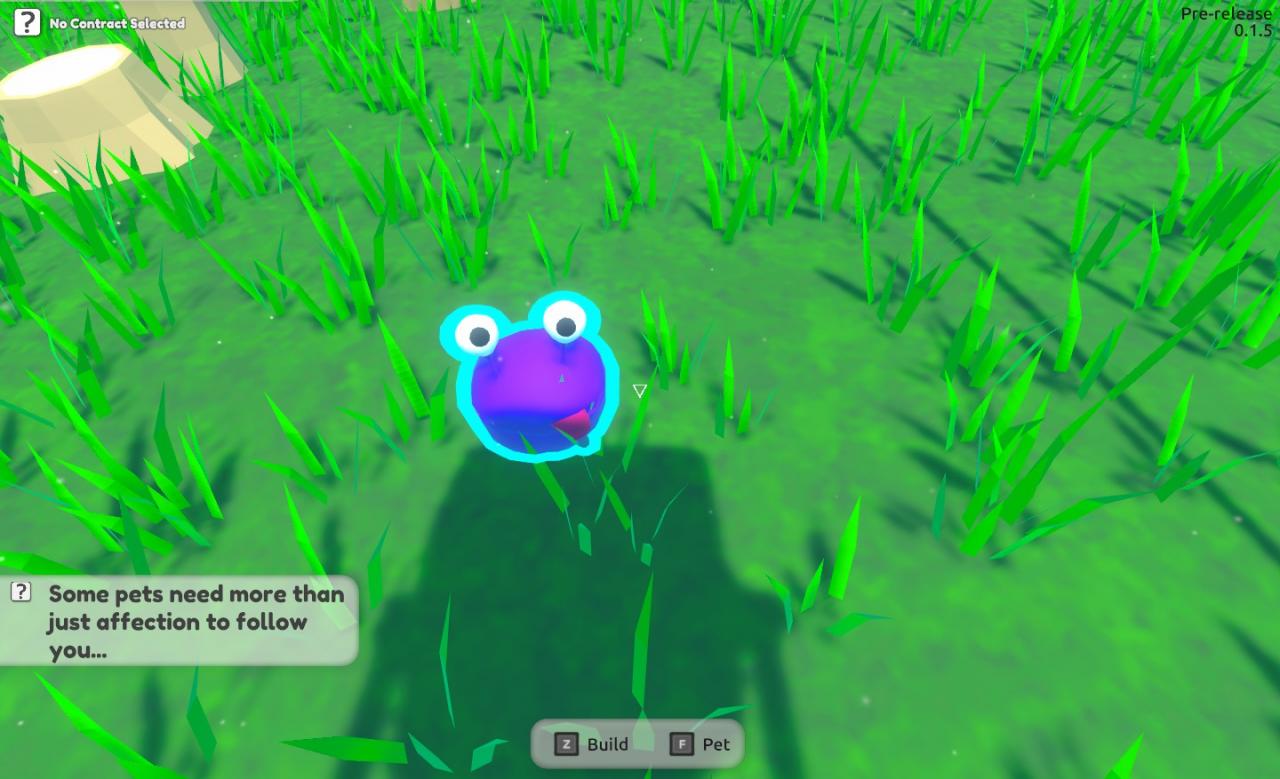 Go ahead and head into the surrounding forests and find a Cuddler. Once you find one, pressing F will pet the Cuddler if you’re close enough and he will love you forever and ever. A heart will appear above his head and he will now follow you. Bring him to the little elevator and he will jump in and you’ll have found your first pet! Congrats! You’ll received a message to check out the store page, and I recommend that you do! From here you’ll find new upgrades and the pets needed to buy them.