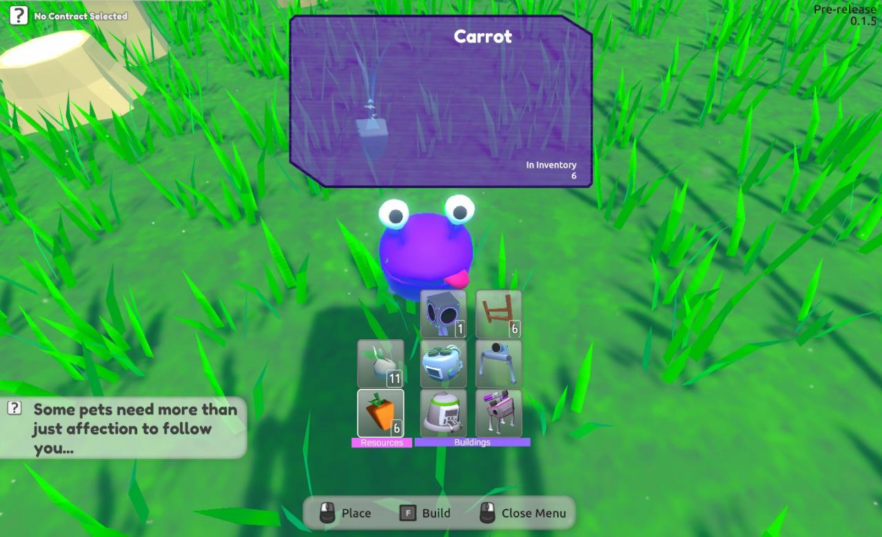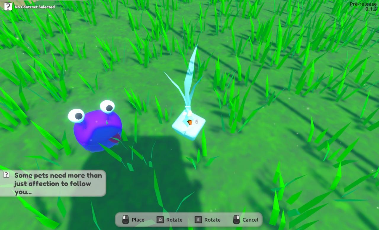 Select the carrots from your build menu like you would any other object and place one down next to the nibbler.