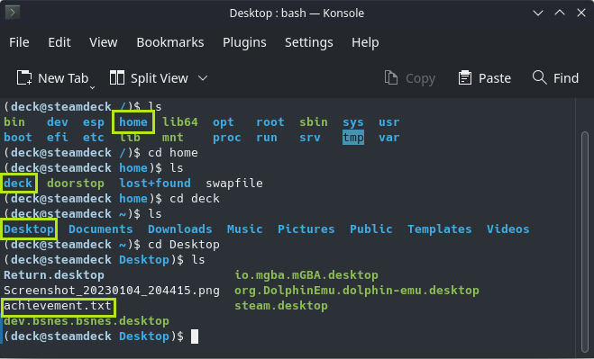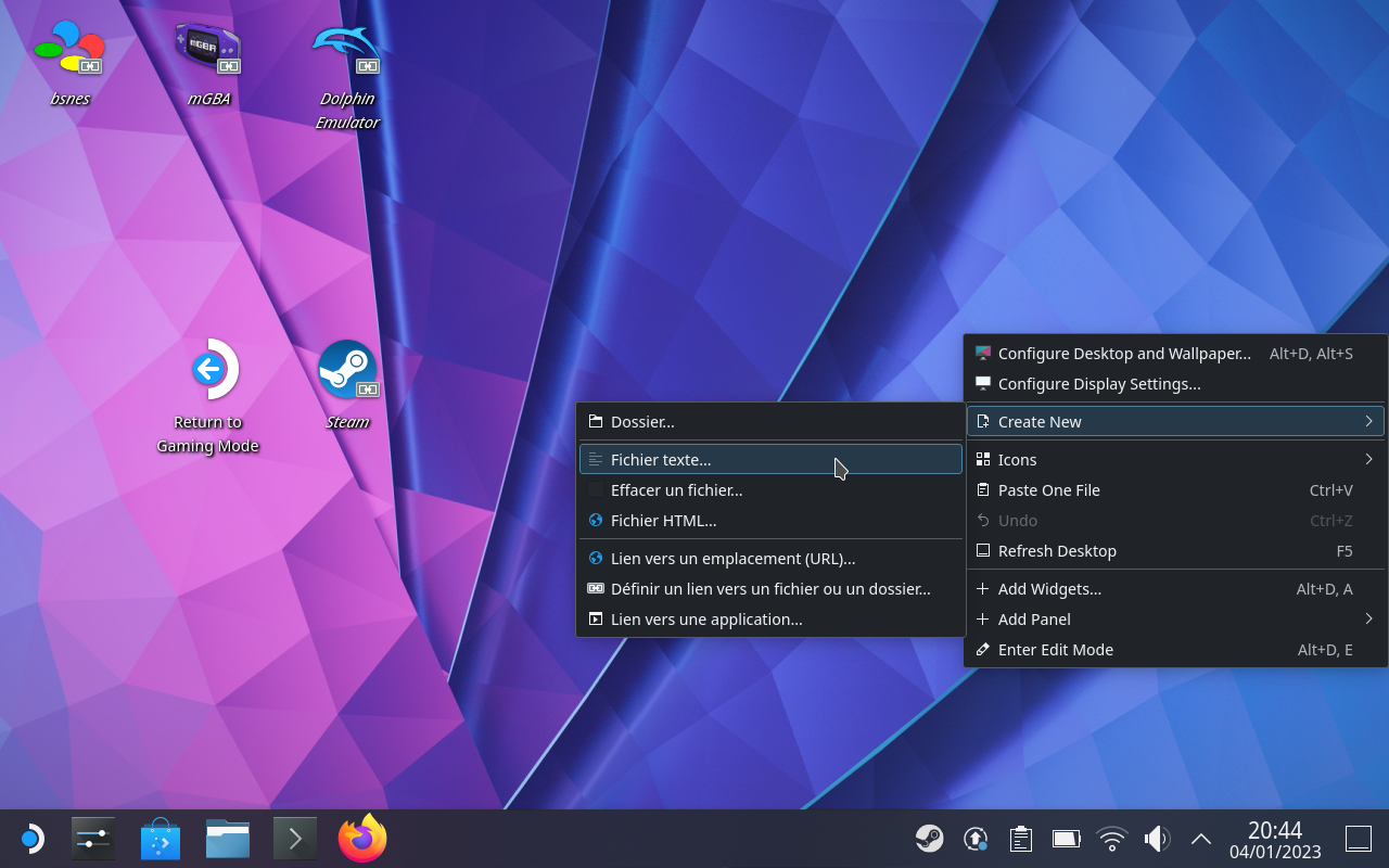 - If the game is running, close it and switch to Desktop Mode. On your Desktop, create a file (right click or left trigger, then “Create New”) that will be deleted for the achievement. For example, here I create a txt file named achievement.txt (Steam + X will bring up the keyboard).