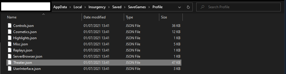 You should see a Theater.json file. That’s where your loadout data is stored. Copy the file and save it somewhere else on your computer. When you do that you’ll have successfully backed up your loadouts.