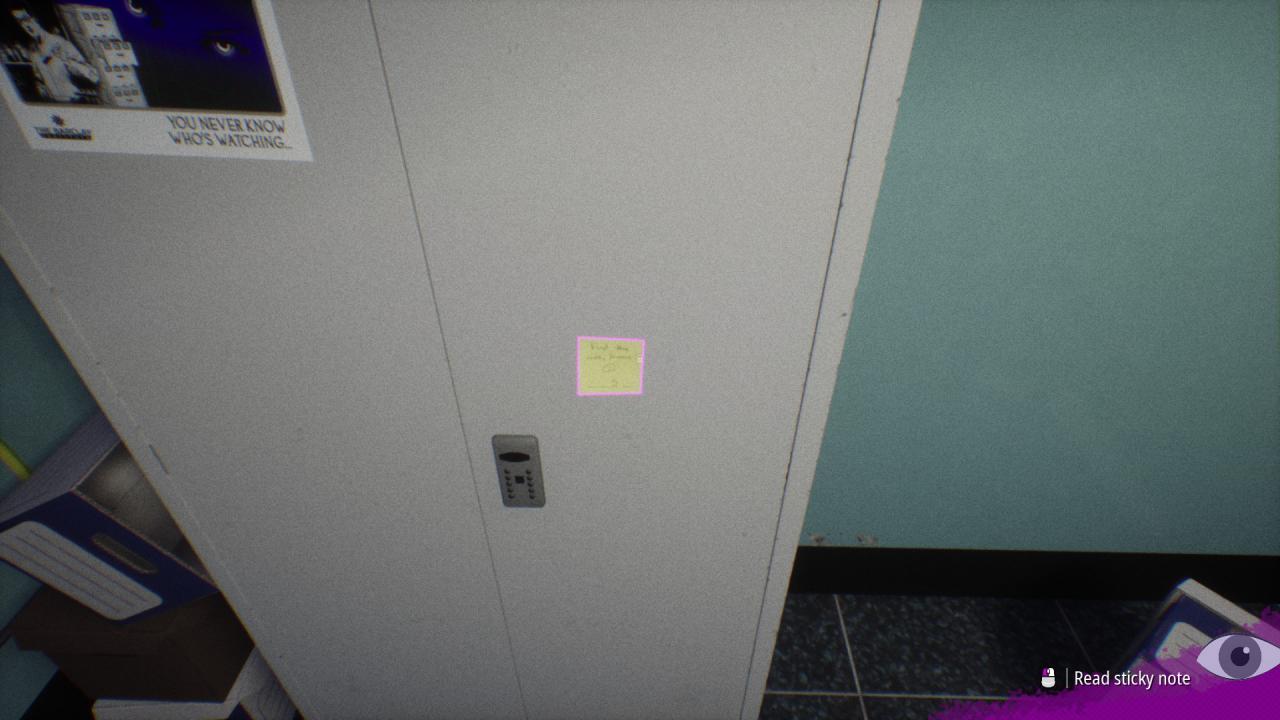 – The third number to find can be found in the easiest location which is on the locked locker itself on the yellow sticky note which shows the number 5.