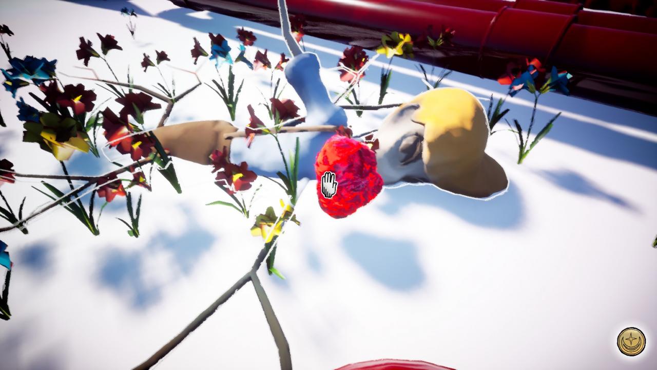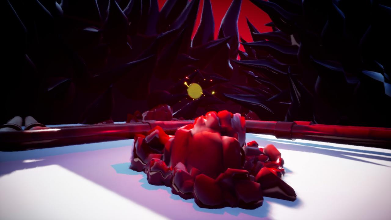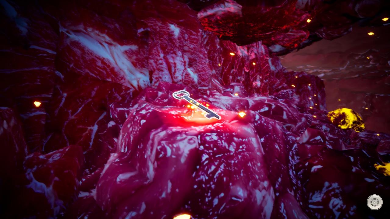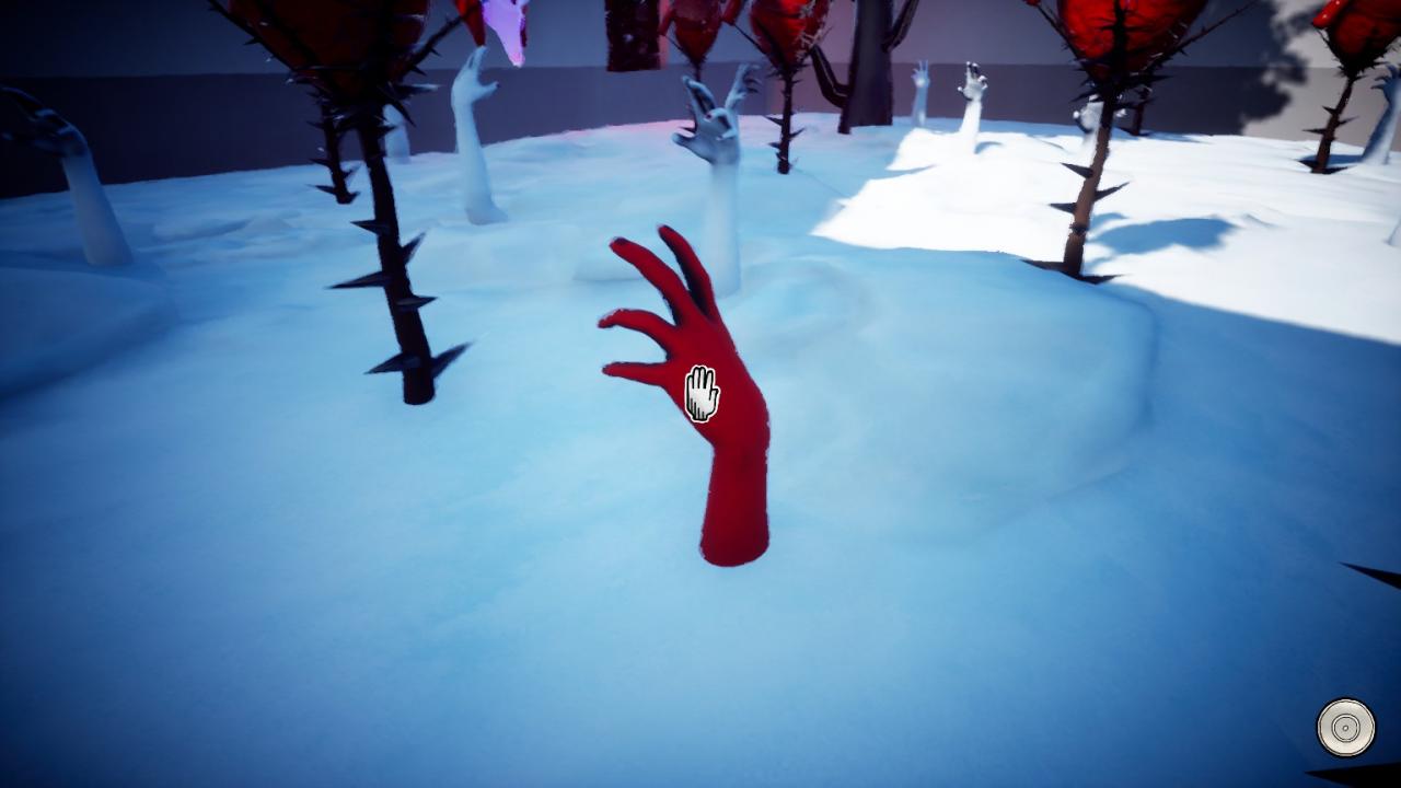 - In the same location, there’s a crack in the wall. Go inside. Interact with the red hand, which is located to the right of the room. Pick it up, and take it to the deer skull. This will open up the path ahead.