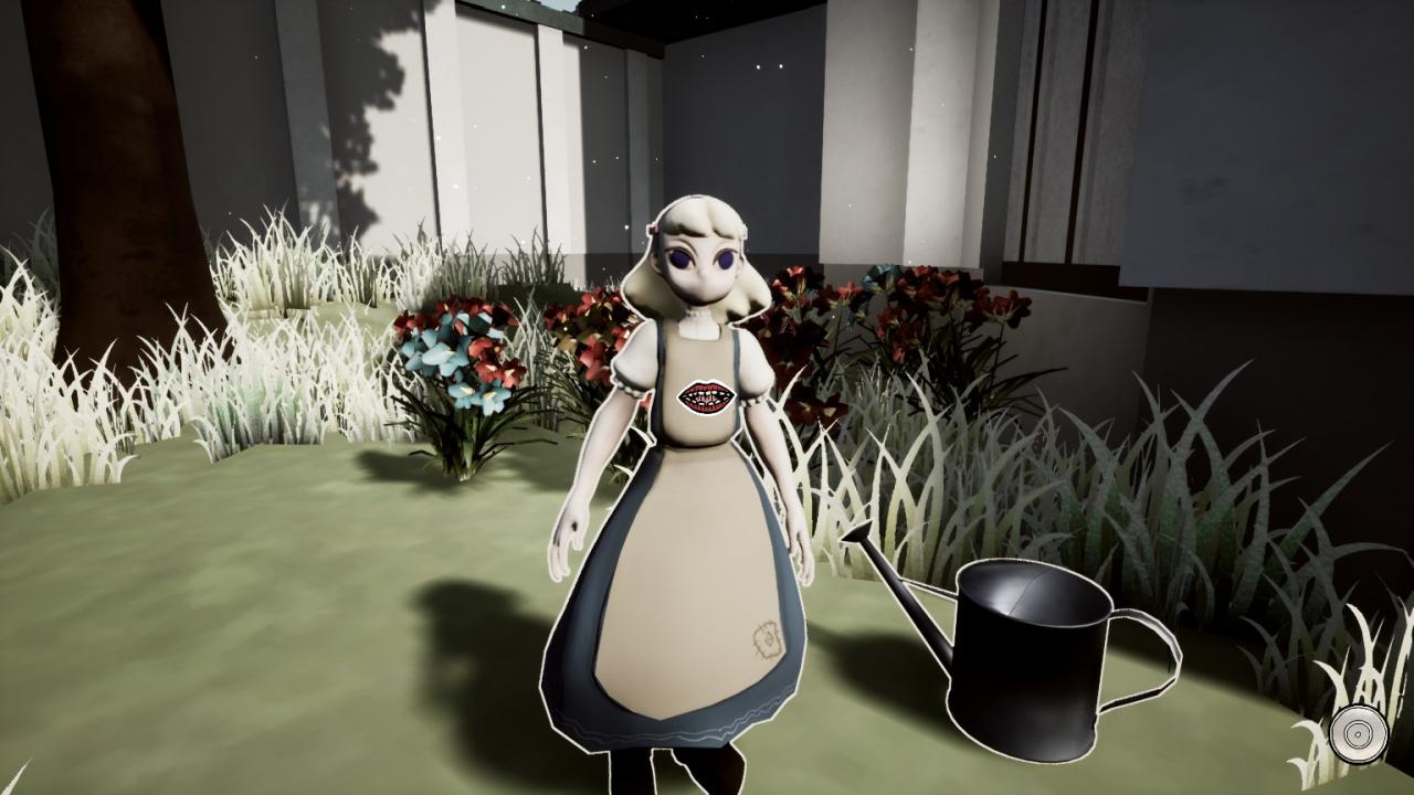 - Press ‘Q’ to return to the dark world, and look for a girl stuck in the ground. Press ‘E’ to open your inventory, select the watering can, and interact with the girl. Pick up [MEAT I] that spawns.