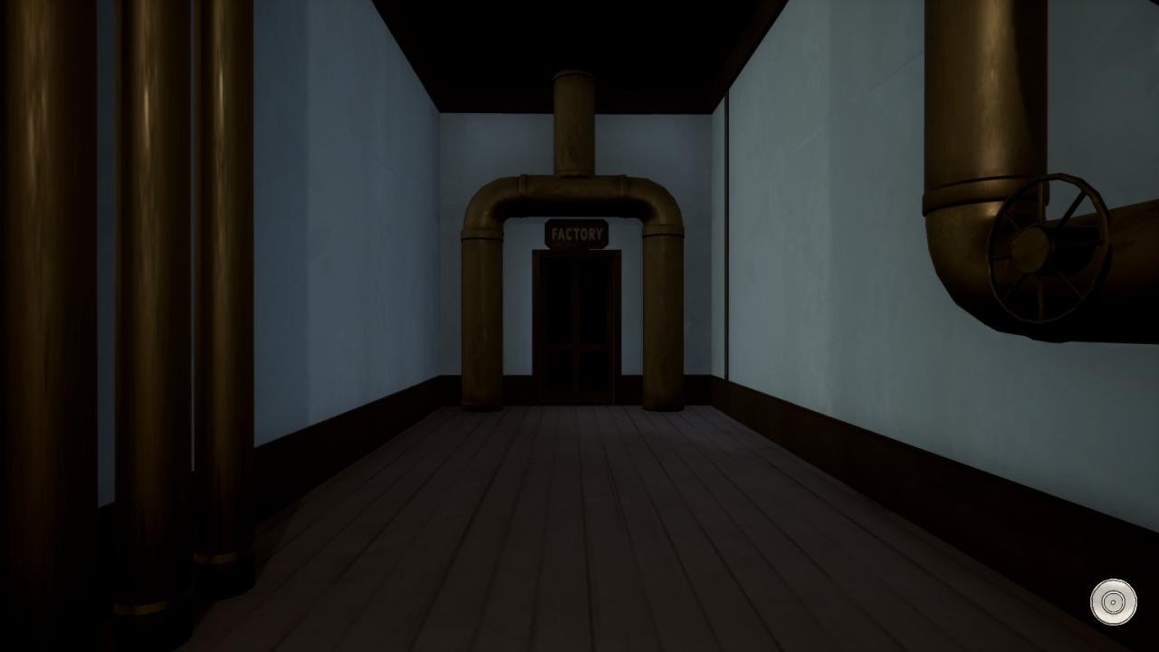 - Press ‘Q’ to go to the real world, through the window, go right, and at the end of the long corridor, open the Factory door with the Factory key from your inventory.