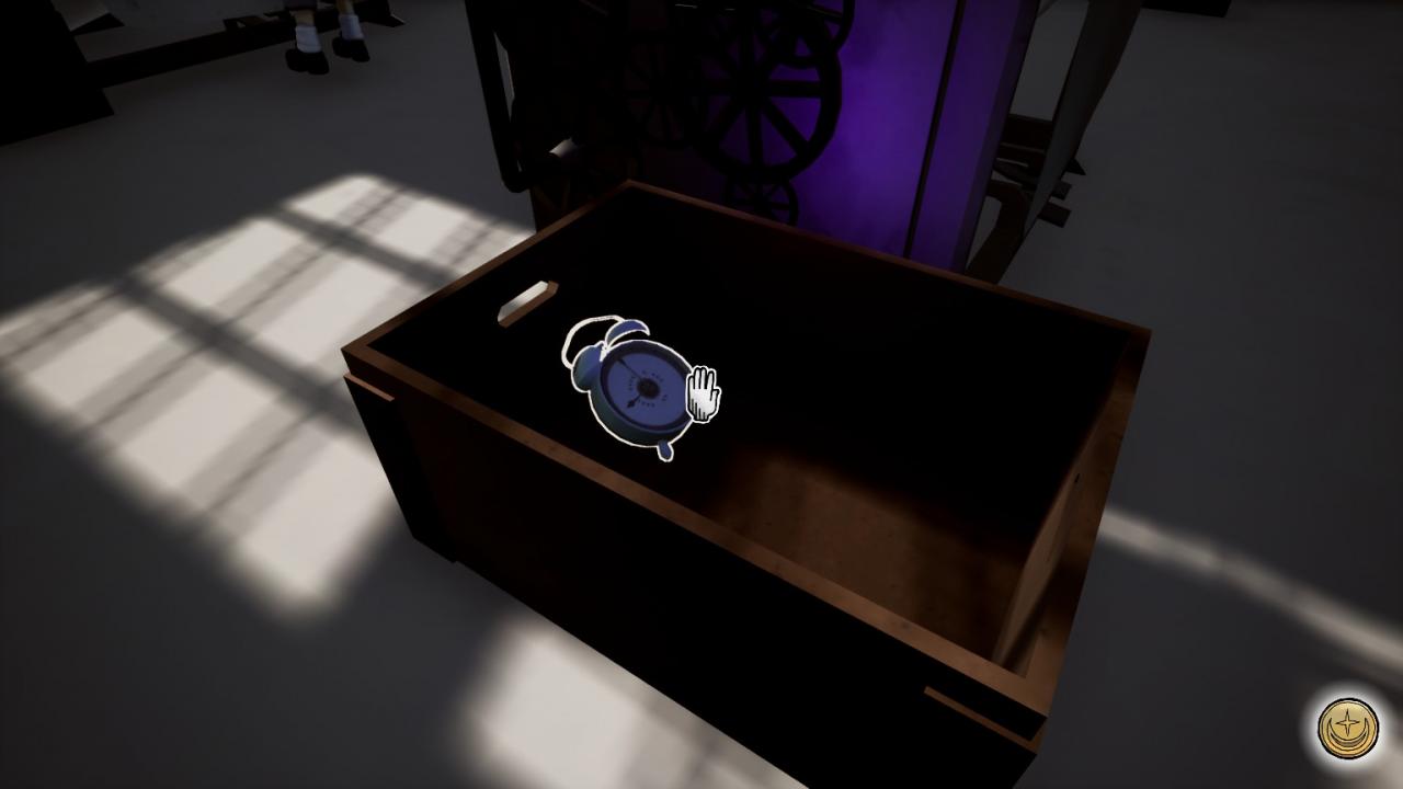 - Press ‘Q’ to return to the real world, and a bit to the left of that location, you’ll find an [ALARM CLOCK]. Pick it up.
