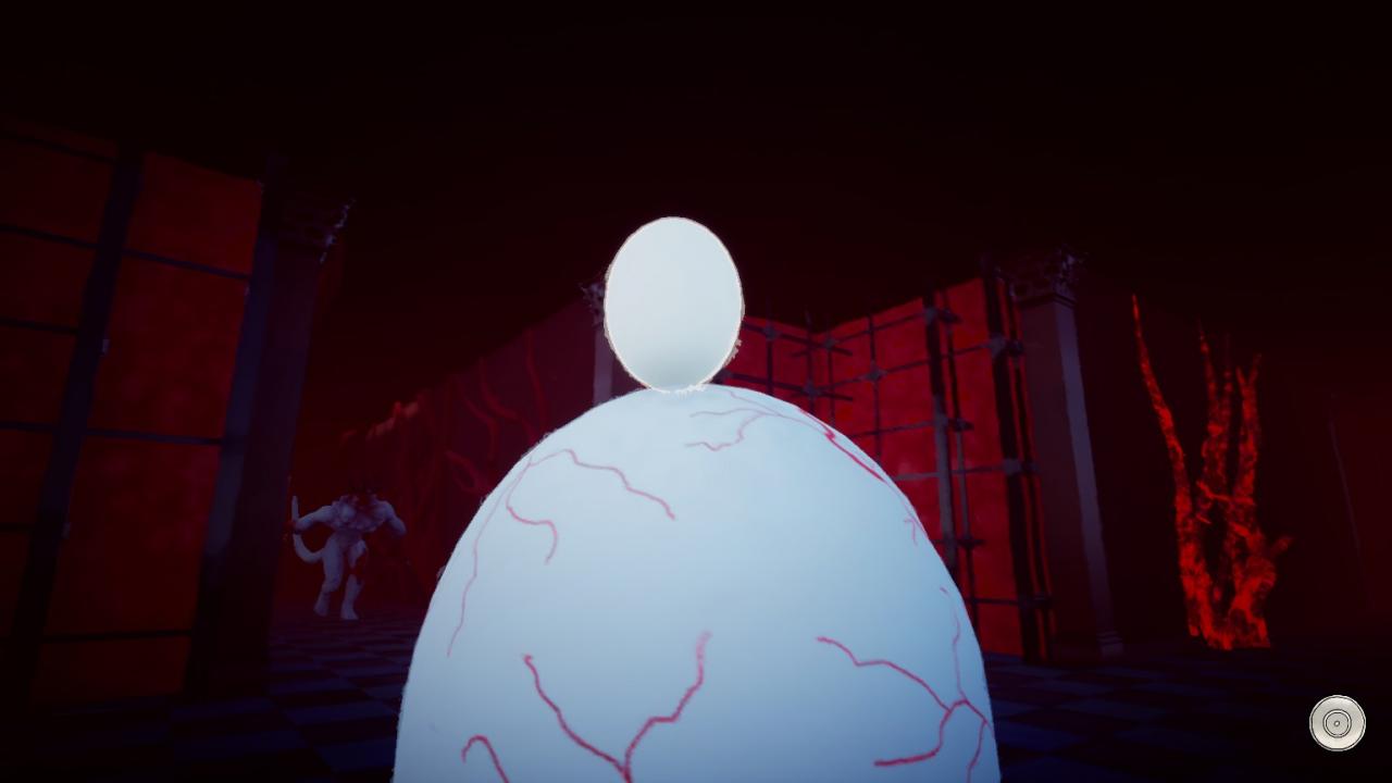 - The door is now open. Go inside. Here, you have to look around for two giant eggs, interact with them. Each will spawn a smaller egg. Pick both up.