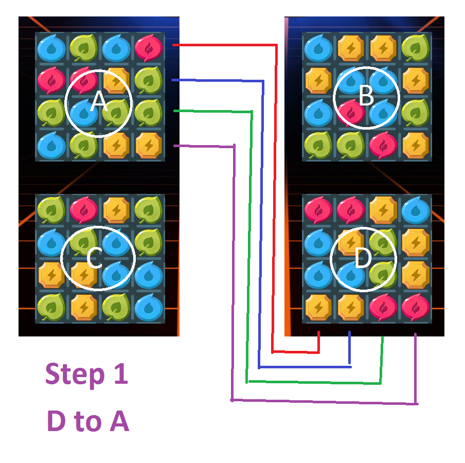 Turning D +90 degrees aligns Grid D and Grid A (Pic 2)