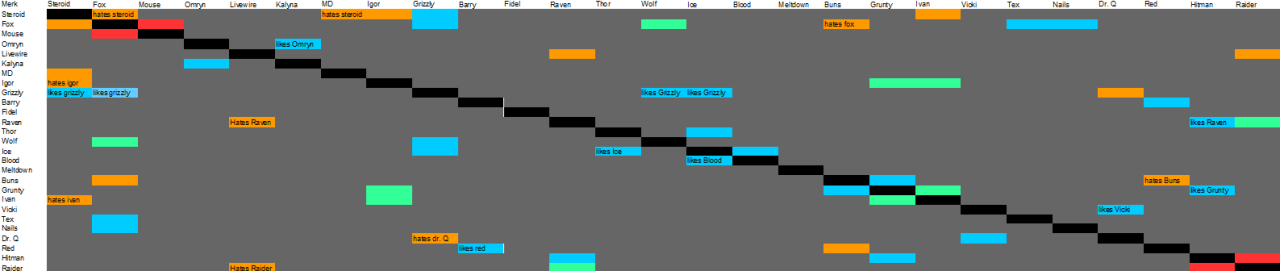 orange: One merc hates the other