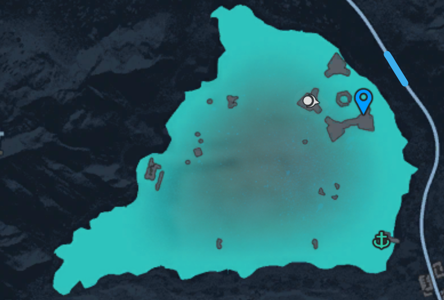 This lake has a few ruins in there, you will look to the “star-ish” one, the boat will be parked there.