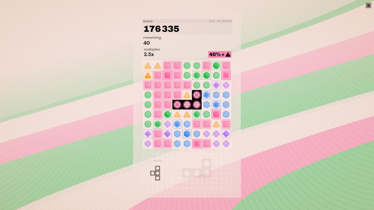 - 2 bombs: Clear all shapes of the same type on the whole board.