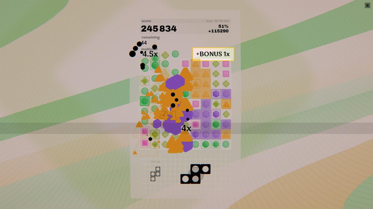 For each omni bomb that you successfully match you will also earn a bonus Tetromino. The amount of bonus Tetrominos is indicated in the UI. This means that instead of the game ending at 50 Tetrominos you can extend that playtime to 51 and beyond. This is very important for getting super high scores.