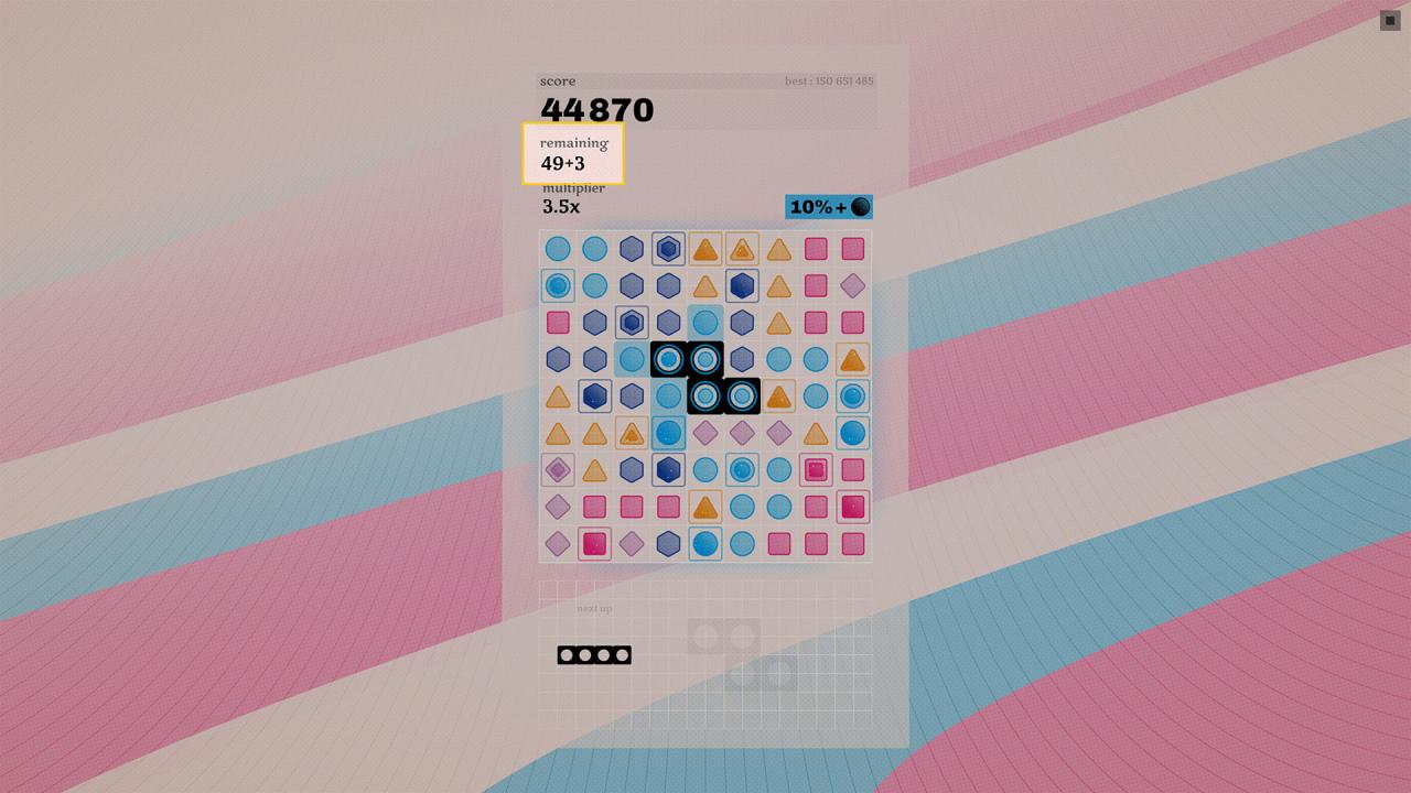 If you’re doing well by now then you’ve added perhaps a few extra Tetrominos beyond your 50. This is good, this is important. Now the goal is to just keep staving off the end. This isn’t easy and the end will come for you, but you can delay it. Omni bombs will still add extra Tetrominos at this point so just keep trying to generate them and match them. Keep your focus on big 4-Bomb matches and make it last as long as you can.
