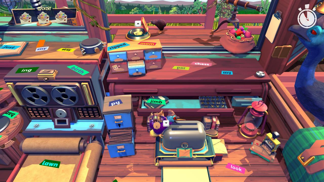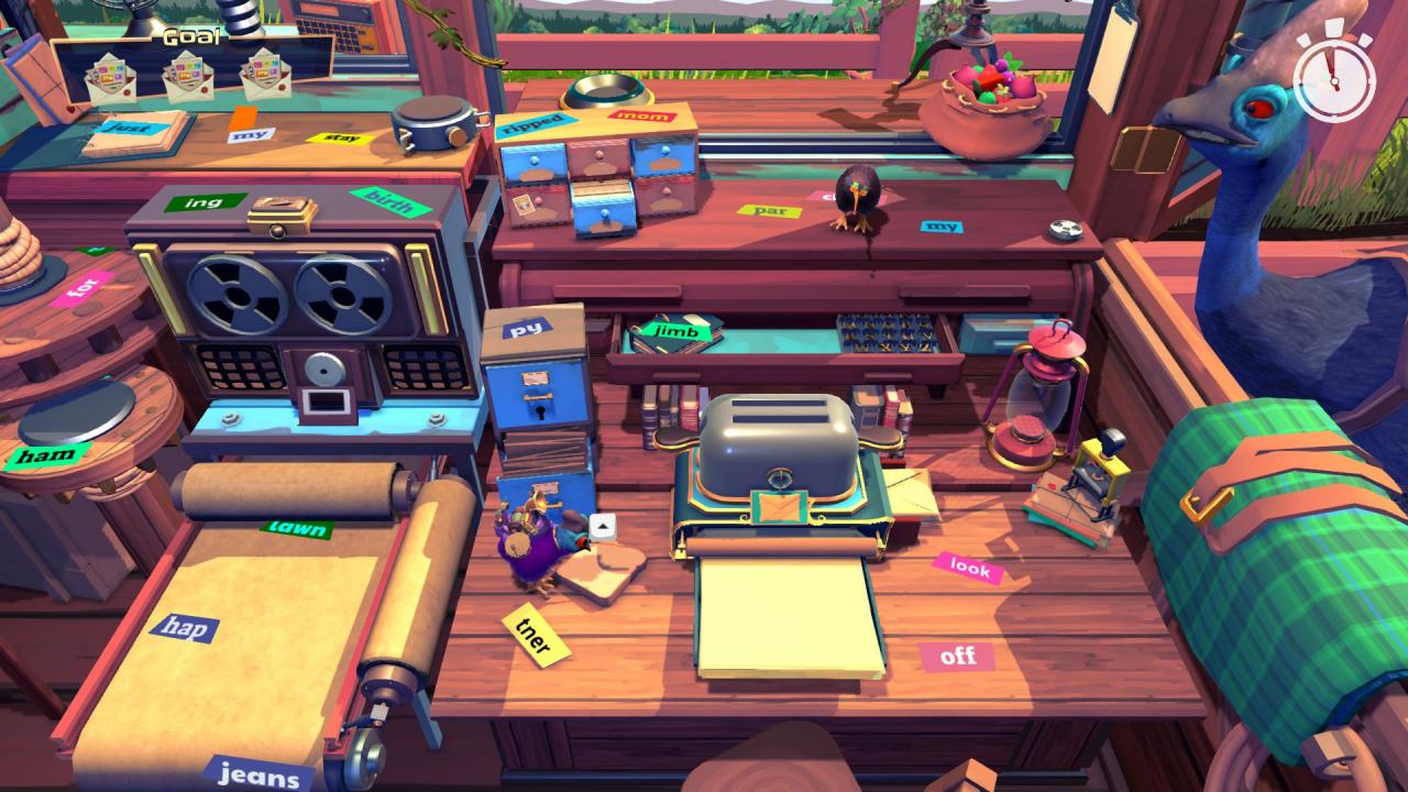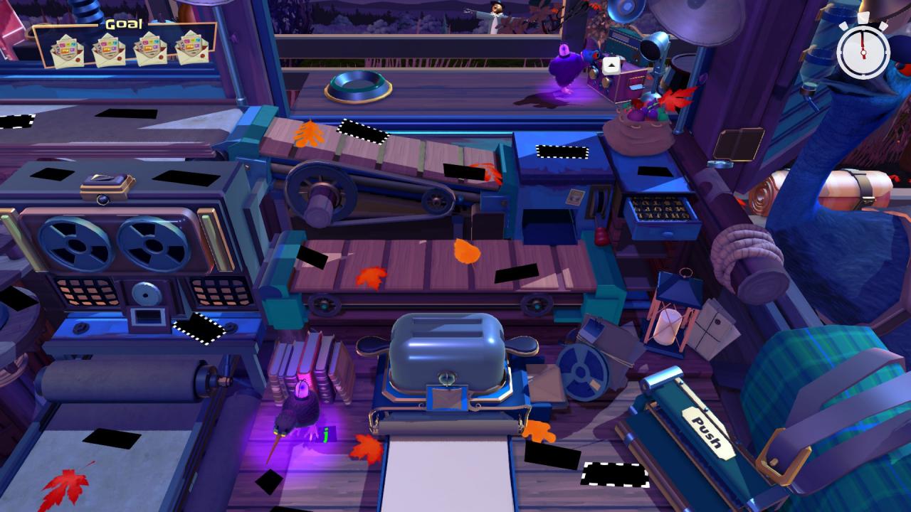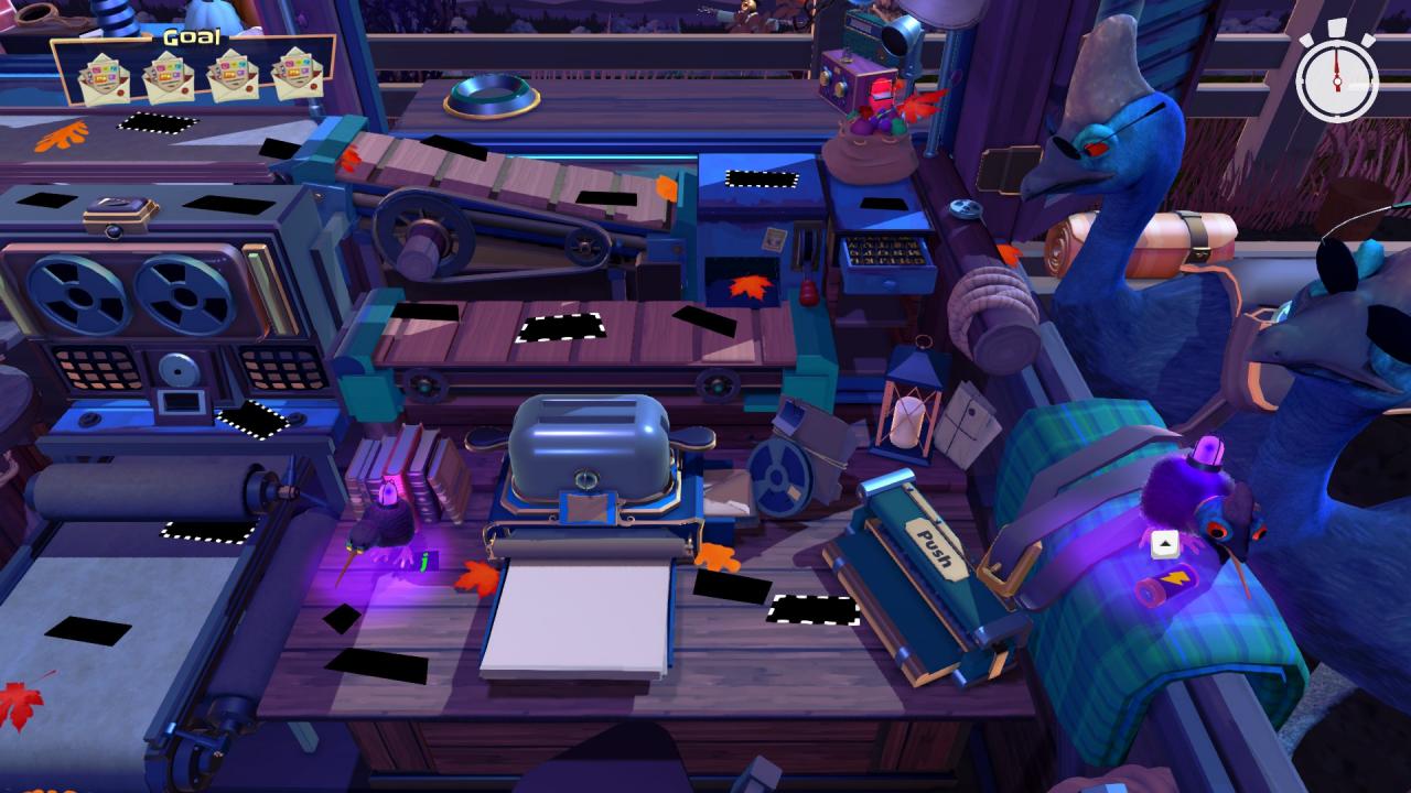 Top left on the binder move the blank piece of paper to revel a key. Use the key on the blue filing cabinet beside the toaster, this gives a piece of bread. Toast the bread in the toaster and once it pops up put it in the cassowary food dish and when the cassowary comes by he will eat it and give the shaker.